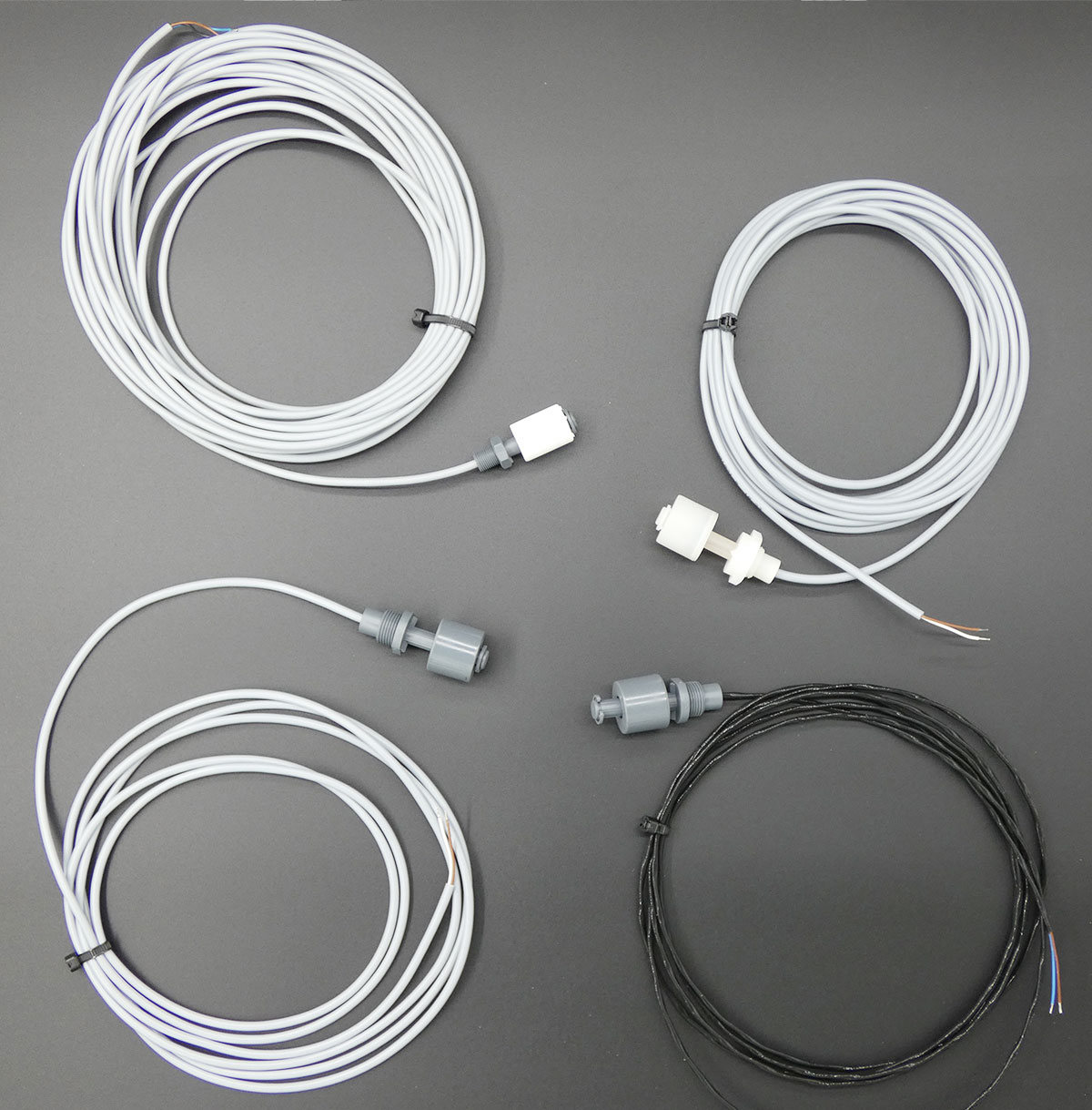Schwimmerschalter gibt es bei uns auch in grösseren Stückzahlen aus verschiedensten Werkstoffen und mit nahezu allen Kabellängen. Auch konfektioniert. Fragen Sie uns!